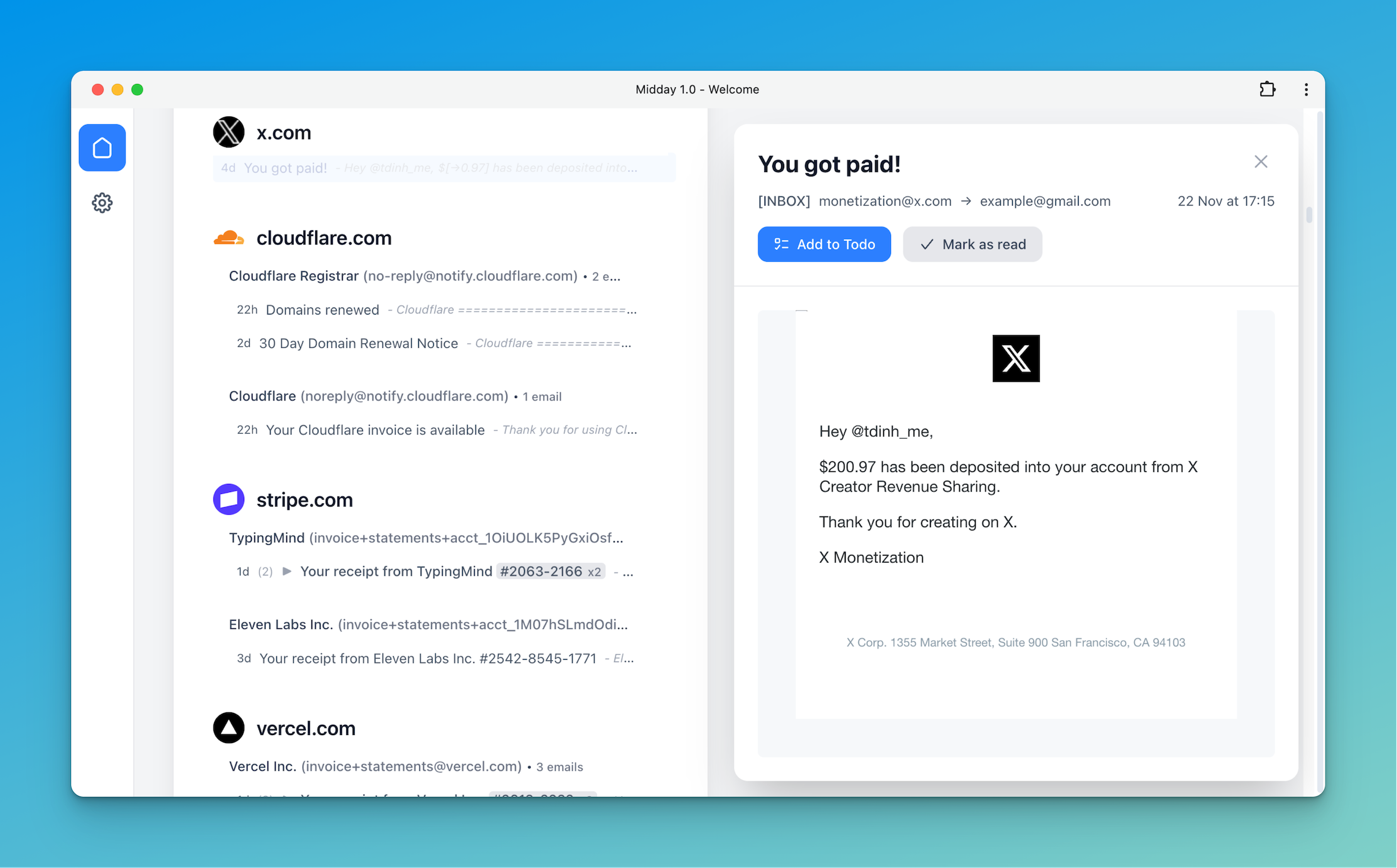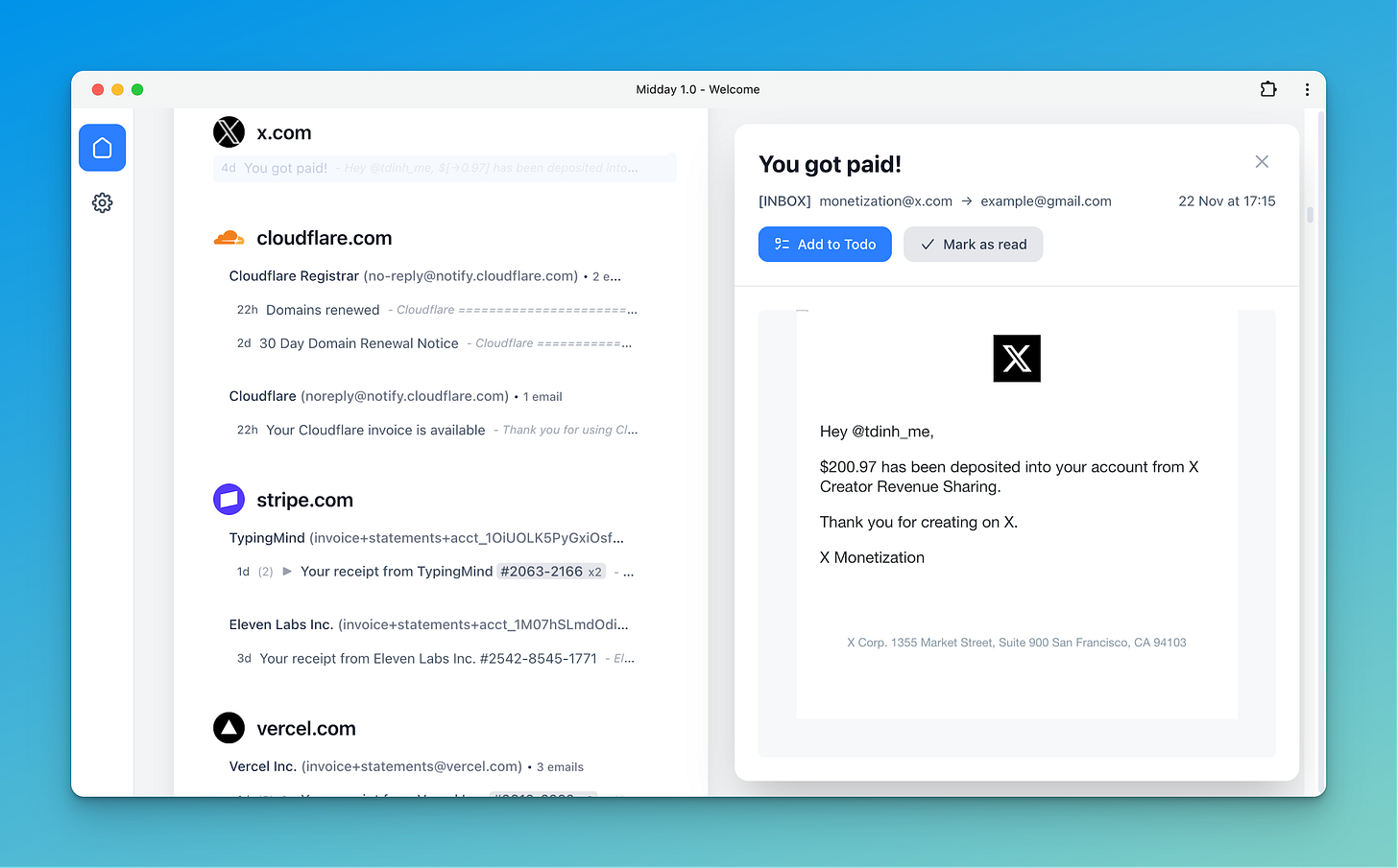 That’s why I’m building this new email client. I’ll call it “Midday”. This is what the latest prototype looks like: